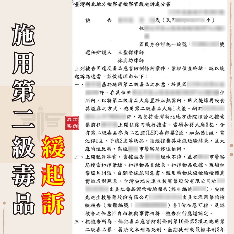 2024/11/29案情過程: 本案將介紹一則,關於當事人曾在友人家吸食過安非他命,某日突被警衝,因此被以「施用第二級毒品」等罪嫌偵辦;所幸及時委任「專精毒品案件」的謙聖,
