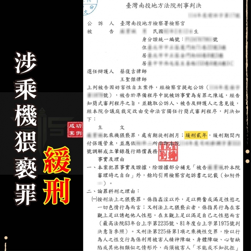 2025/06/12案情過程: 在強制性交案件中,一旦遭人提告,即使沒有明確的傷勢或證據,也可能會遭到收押甚至起訴,對被告的名譽與人生帶來重大衝擊。本案即是一例:被告是一位