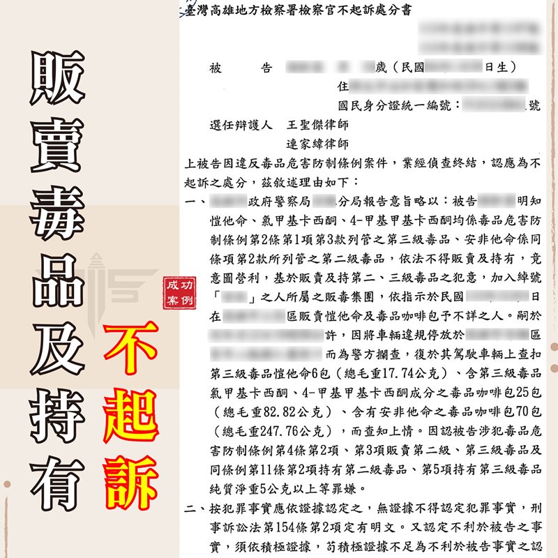2024/10/29案件說明: 本案將介紹一則,關於當事人遭他人指控有販賣咖啡包,因此被以「販賣第三級毒品」等罪嫌偵辦;所幸及時委任「專精毒品案件」的謙聖,獲「不起訴」的成