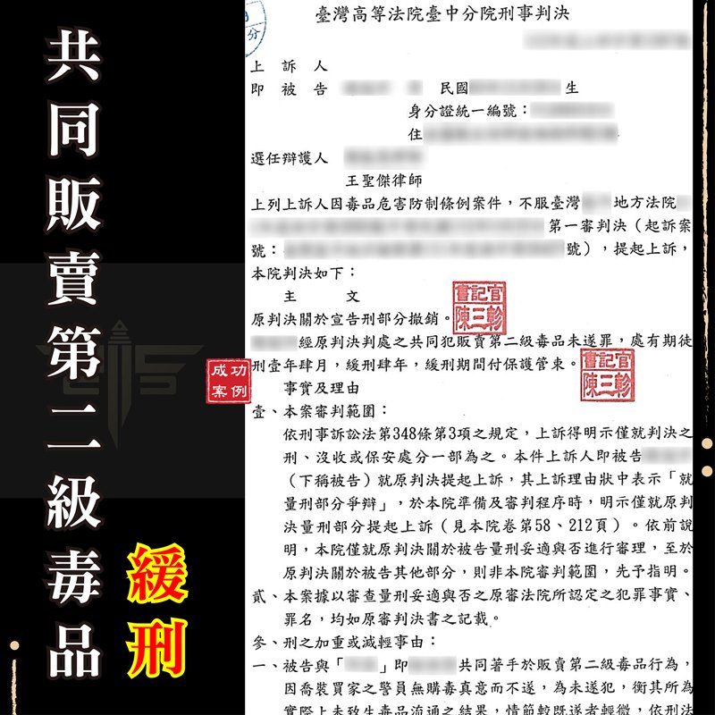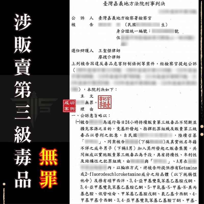 2024/12/02案情過程: 本案當事人遭四個人指控他為販毒集團的老大,因此被以「販賣第三級毒品」、「指揮犯罪組織」等罪嫌偵辦;所幸及時委任「專精毒品案件」的謙聖,獲「無